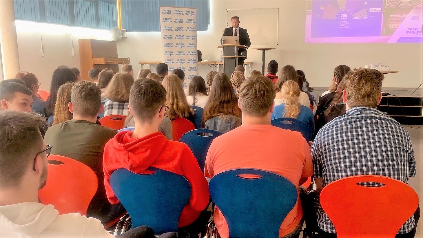 Es ist wichtig für unsere Schüler, dass Europa ein Gesicht bekommt“, freute sich der Oberstudienrat Andreas Göbel über den Besuch des Politikers. Dieser informierte sich zunächst über das dortige politische Bildungsangebot. Das Thema Europa – so berichtete Alexandra Hellmig, Fachsprecherin für Politik und Wirtschaft – wird gerade im Leistungskurs behandelt und so passt der Besuch des Abgeordneten genau in unseren Plan.